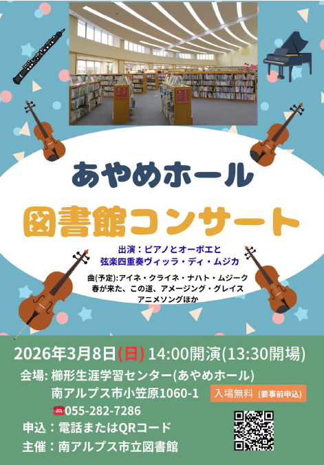 あやめホール図書館コンサート 3月8日(日):申込受付中!